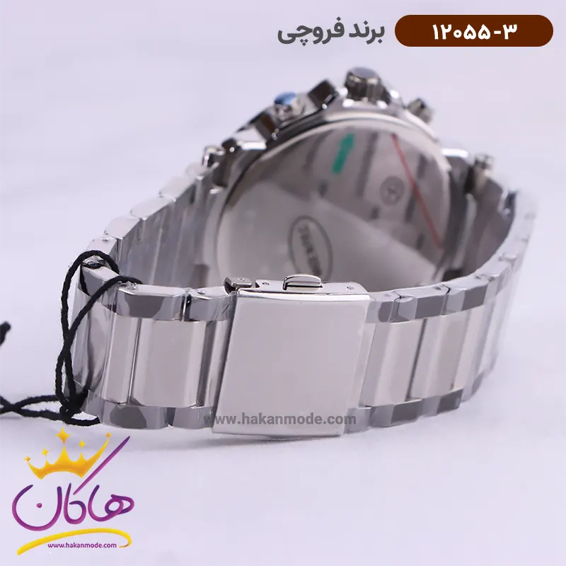 قفل ساعت فروچی مردانه فلزی نقره ای صفحه طوسی 12055/3
