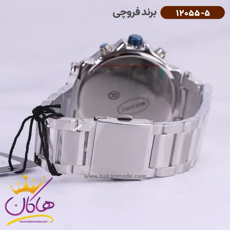 قفل ساعت فروچی مردانه فلزی نقره ای صفحه سورمه ای 12055/5