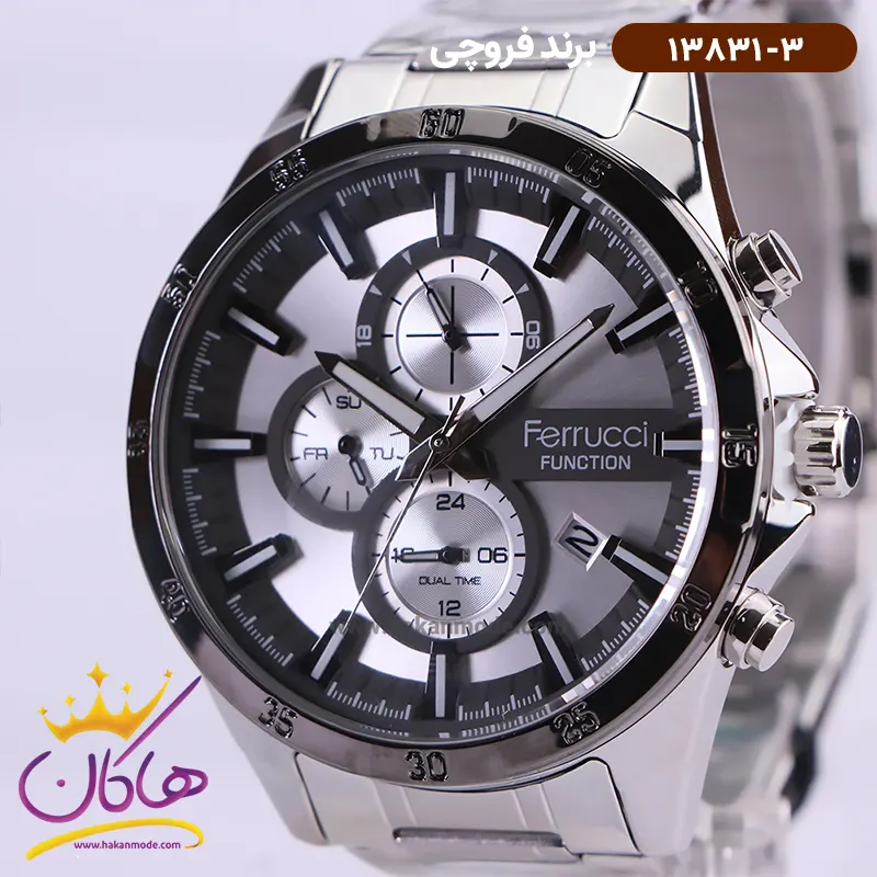 خرید ساعت فروچی مردانه فلزی نقره ای سه موتوره 13831/3