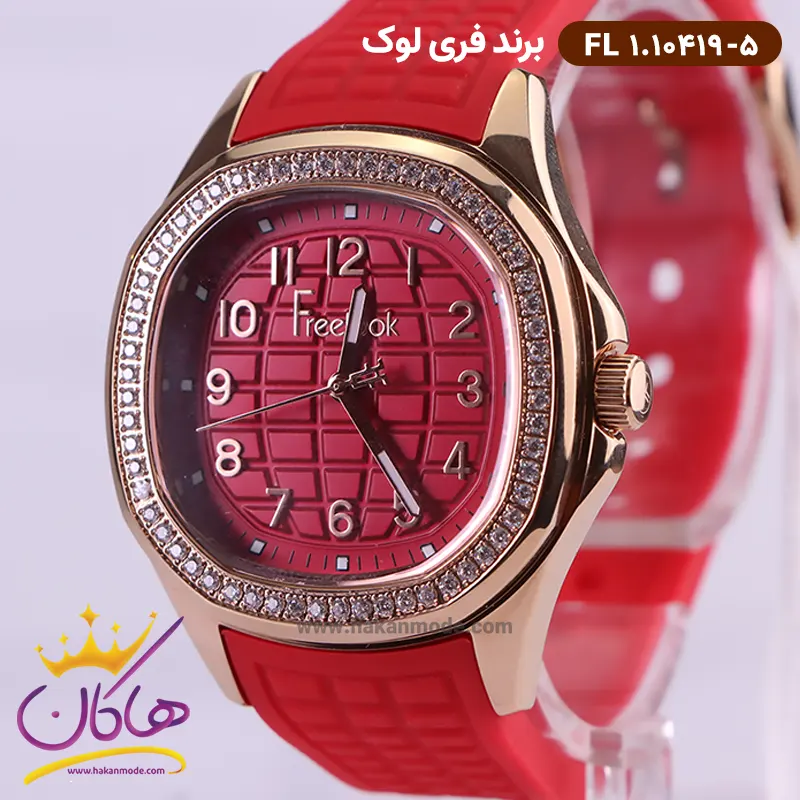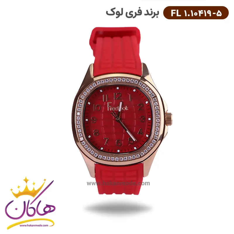 خرید ساعت فری لوک زنانه بند رابر قرمز قاب نگین دار 10419/5