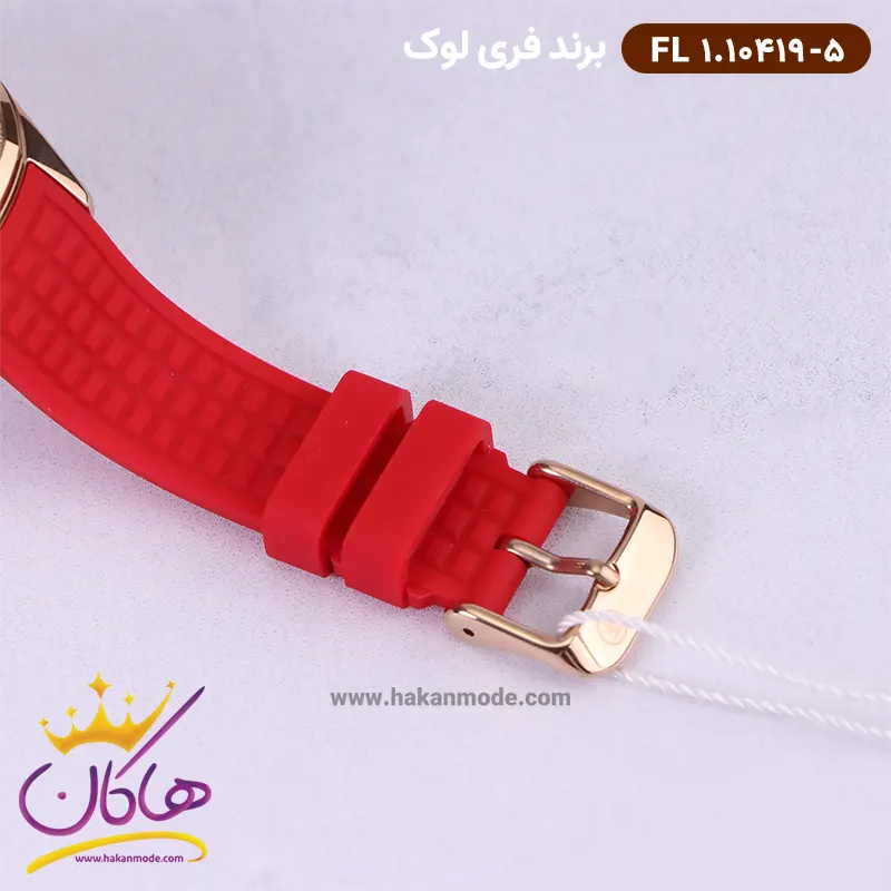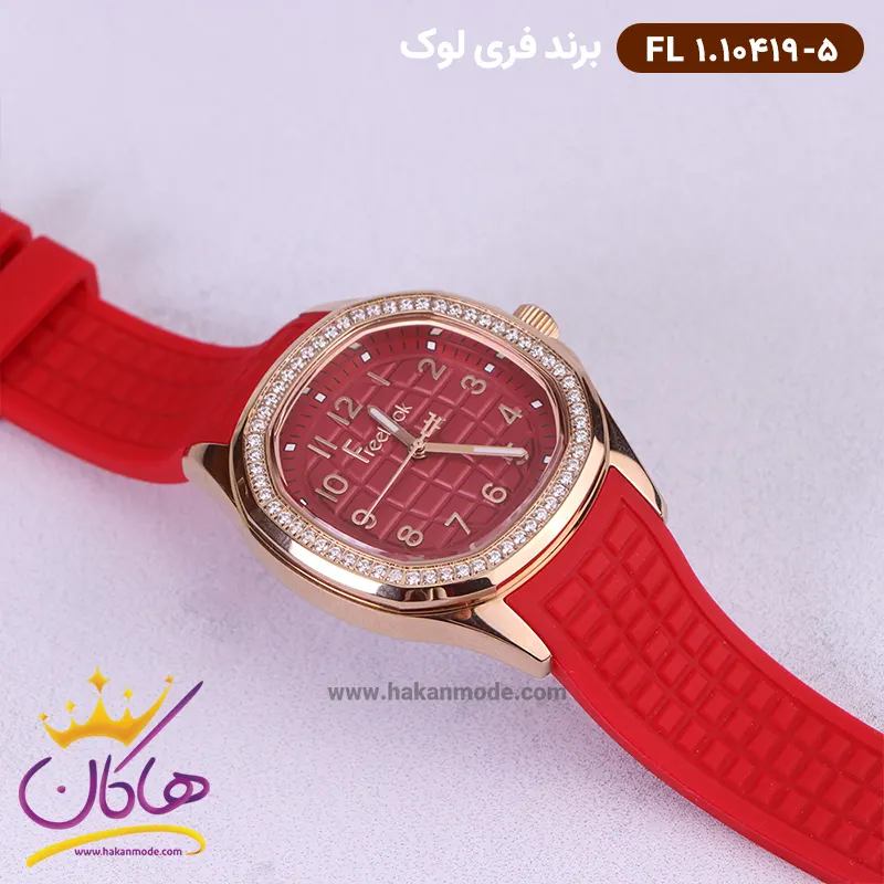 قفل ساعت فری لوک زنانه بند رابر قرمز قاب نگین دار 10419/5