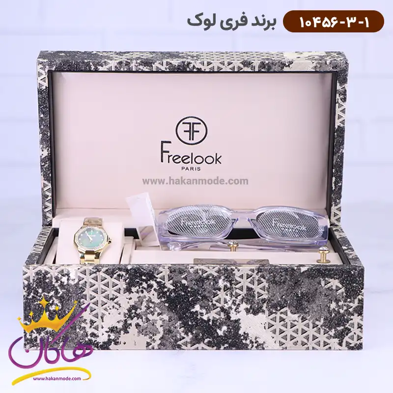 ساعت فری لوک زنانه فلزی طلایی 10456/3/1 و عینک درون جعبه