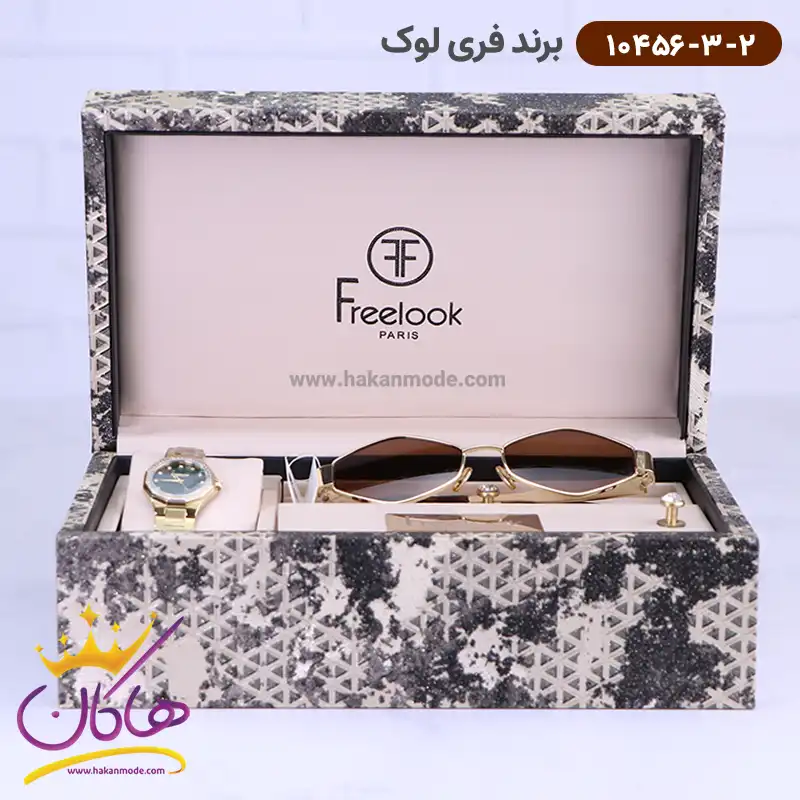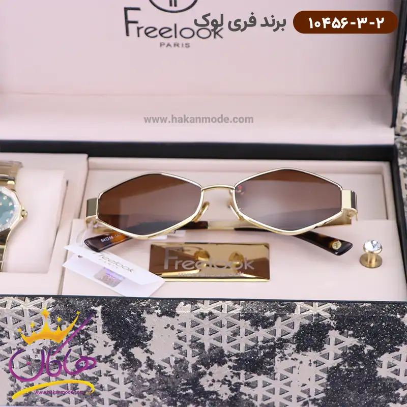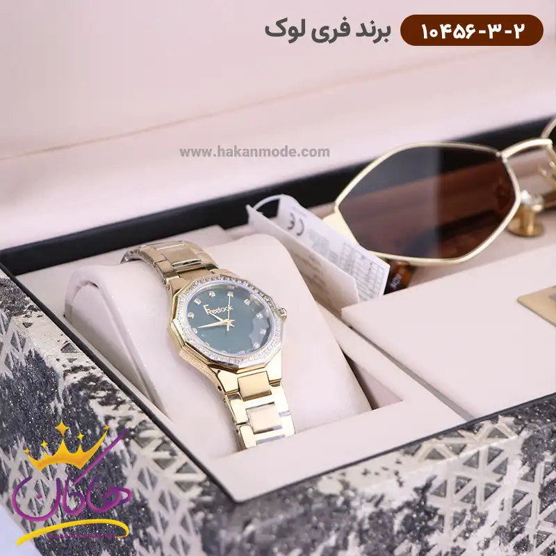 ساعت فری لوک زنانه فلزی طلایی 10456/3/2 و عینک درون جعبه