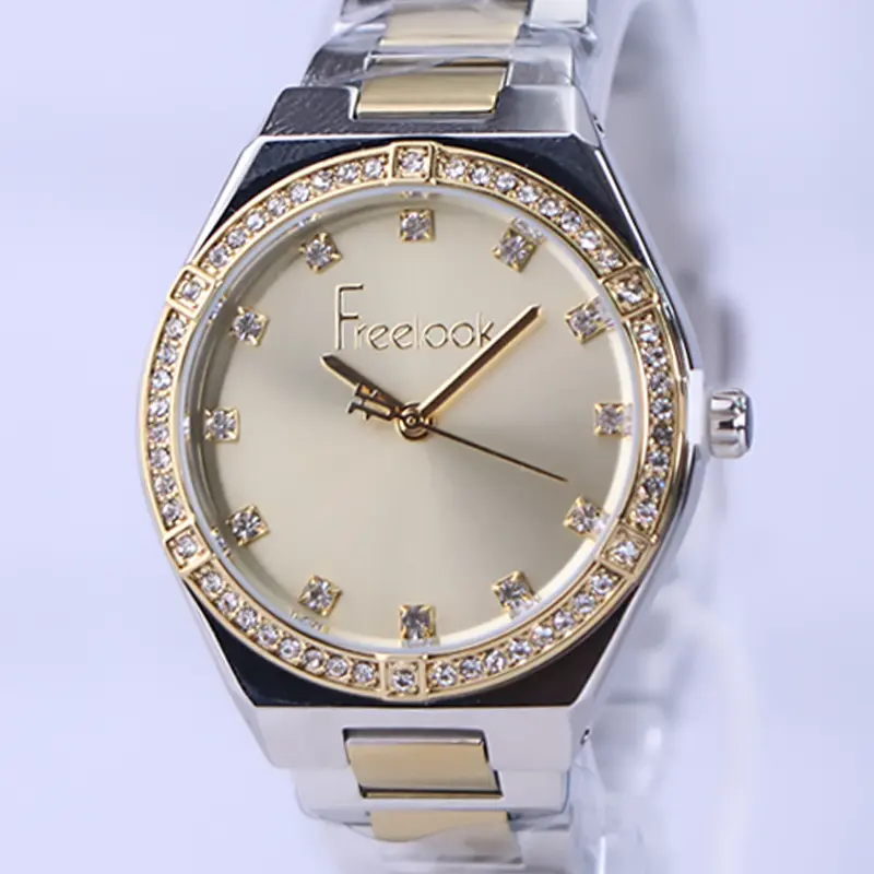 ویژگی ساعت فری لوک زنانه فلزی قاب نگین صفحه طلایی FL.1.10398/3