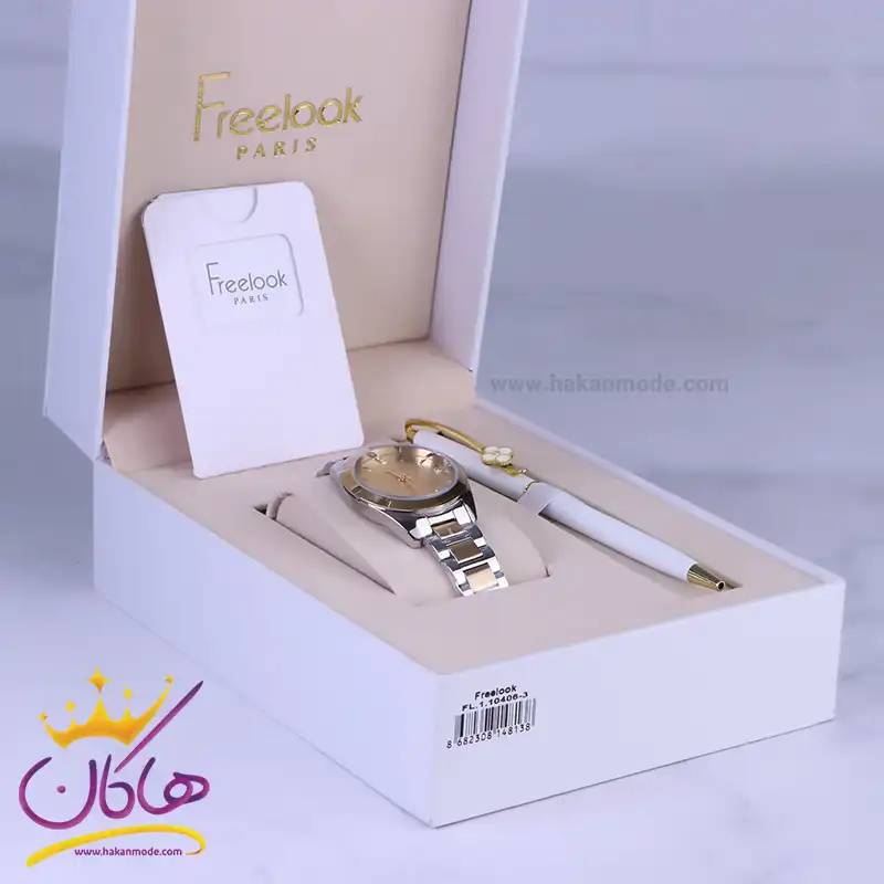 ساعت فری لوک زنانه فلزی نقره ای طلایی FL.1.10406/3 همراه با خودکار درون جعبه
