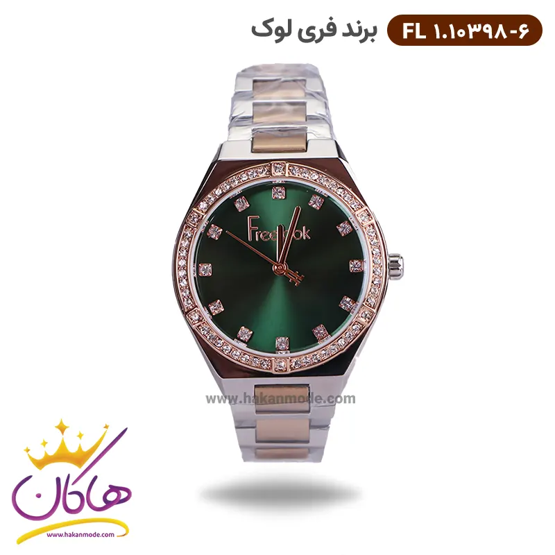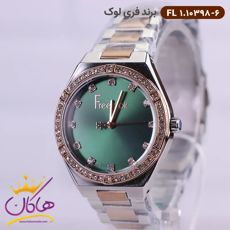 خرید ساعت فری لوک زنانه فلزی قاب نگین دار صفحه سبز 10398/6