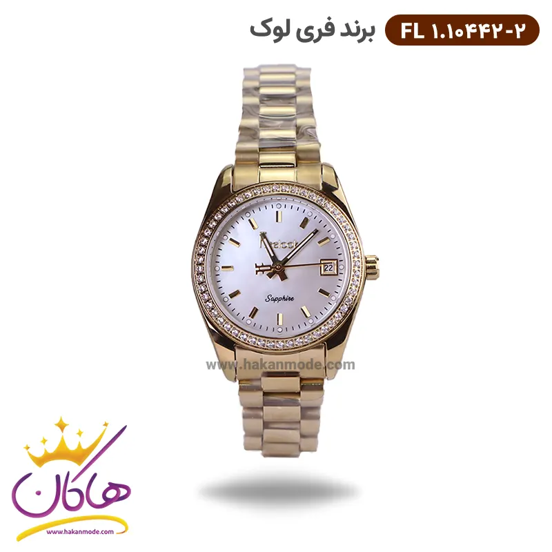 قفل ساعت فری لوک زنانه فلزی طلایی قاب نگین دار 10442/2
