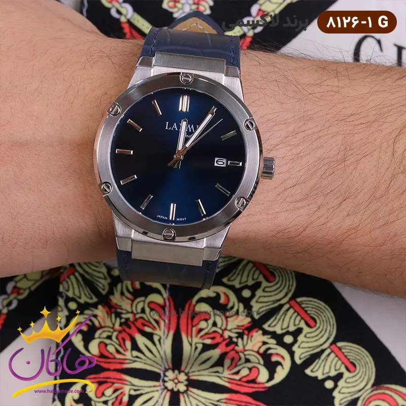 ساعت لاکسمی بند چرمی ست 8126/1 مردانه روی دست از نزدیک