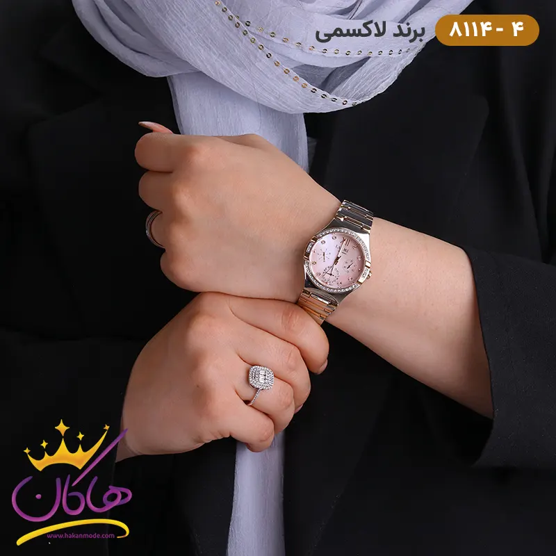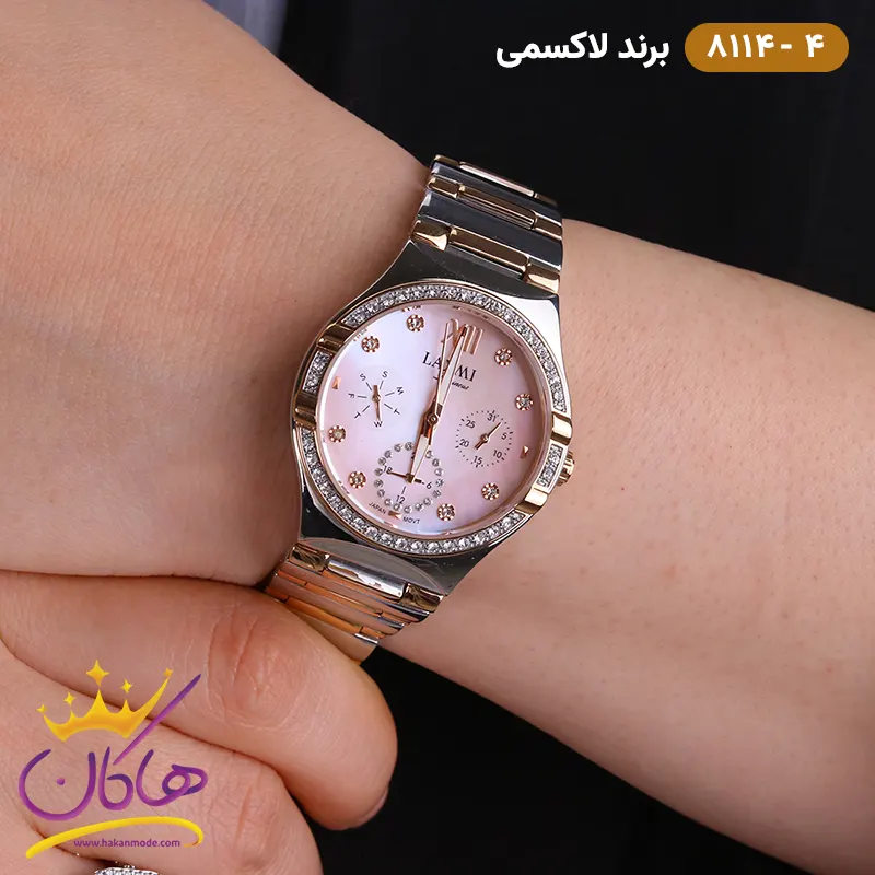 خرید ساعت لاکسمی زنانه رزگلد دور نگین مدل 8114/4