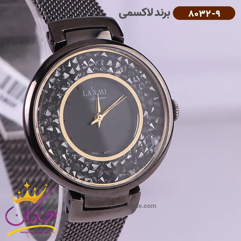 ویژگی ساعت لاکسمی زنانه استیل مشکی نگین دار 8032/9