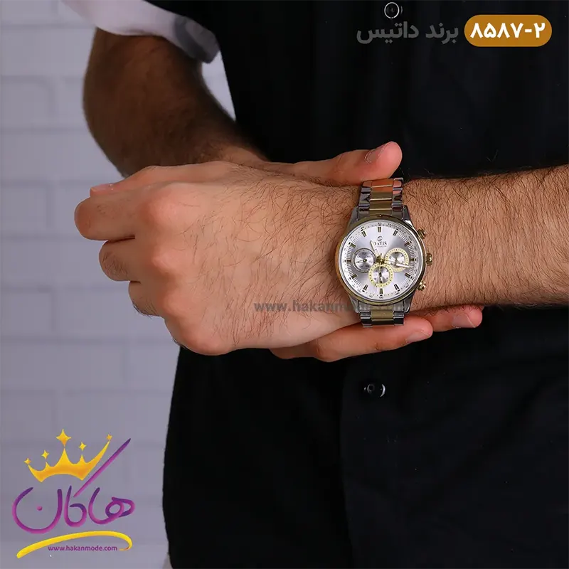 ساعت مردانه داتیس فلزی نقره ای طلایی 8587/2 نمای روی دست