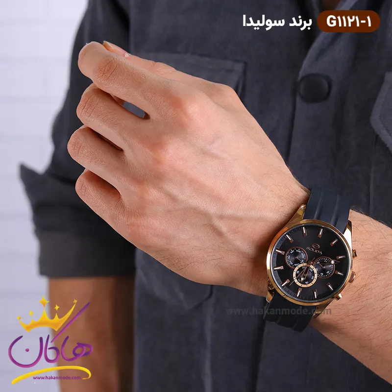 بهترین قیمت ساعت مردانه سولیدا مشکی قاب رزگلد |کد 1121/1