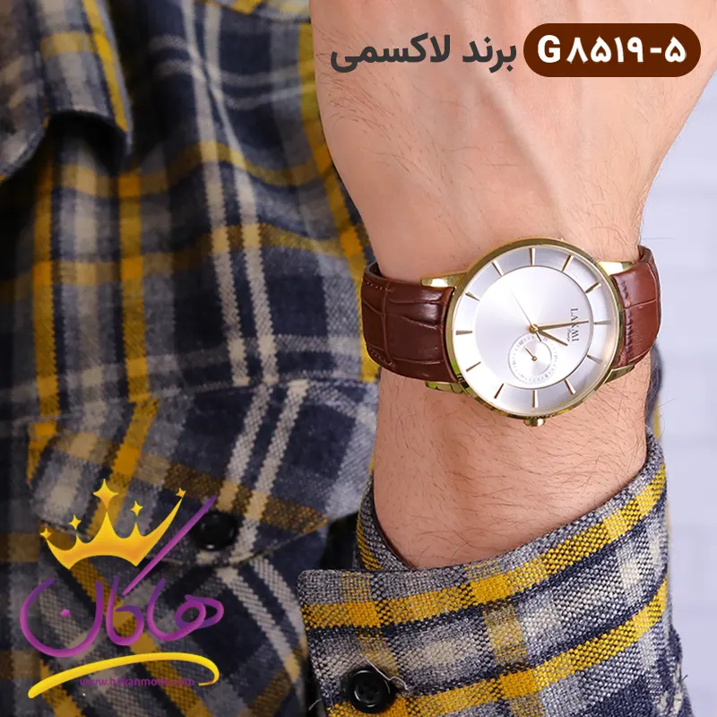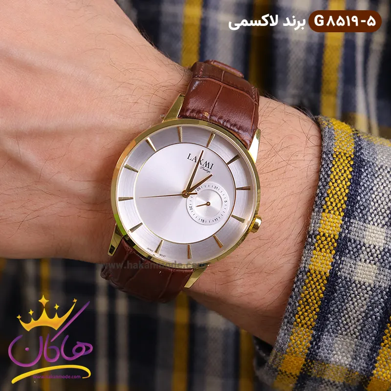 بهترین قیمت ساعت مردانه لاکسمی بند چرم قهوه ای کد 5-8519 G اورجینال
