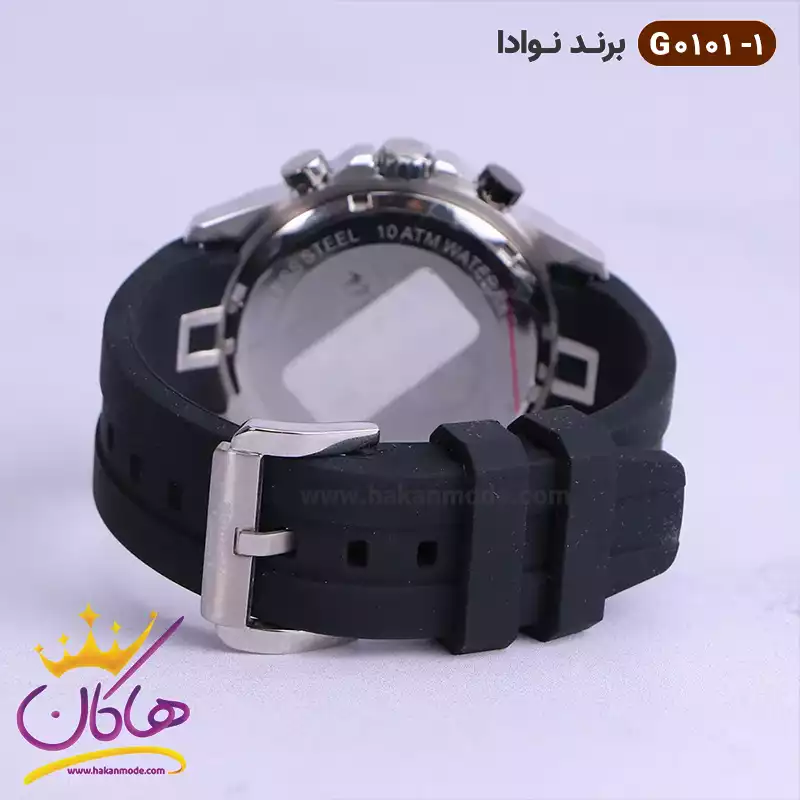 قفل ساعت مردانه نوادا بند رابر قاب استیل 0101/1