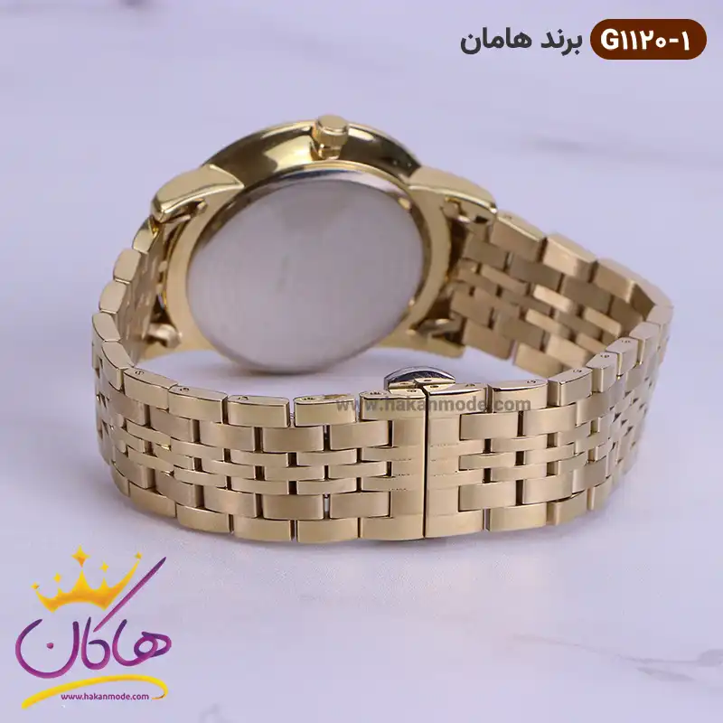 ویژگی ساعت مردانه هامان طلایی صفحه نقره ای کد 1120/1 G