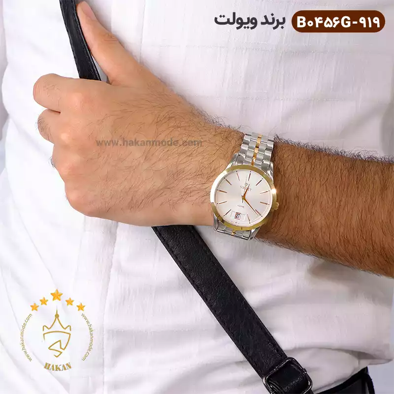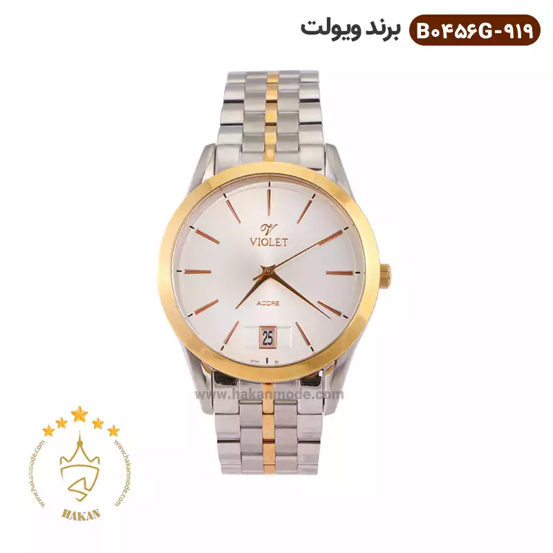 معرفی ساعت مردانه ویولت بند فلزی نقره ای طلایی B0456G-919