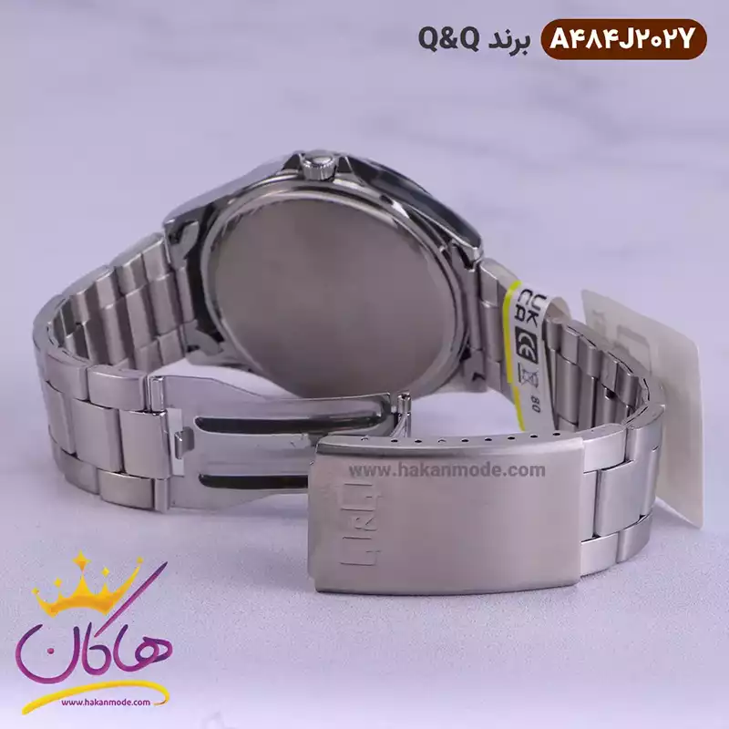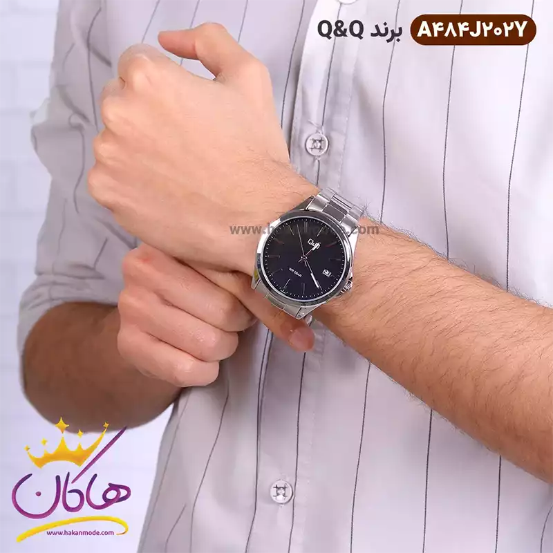 خرید ساعت مردانه کیو اند کیو نقره ای صفحه مشکی A484J202Y ظاهری مدرن و جذاب دارد. این ساعت فلزی، رنگ ثابت و ضدحساسیت است. موتور این ساعت ساخت ژاپن و از نوع کوارتز است یعنی با قرار دادن یک باتری تا مدتها به خوبی و به صورت دقیق کار می کند. ساعت کیو کیو فلزی، اورجینال است و یکسال گارانتی موتور و تا پنج سال گارانتی تعویض باتری دارد. ضد آب بودن در حد 3 ATM یکی دیگر از ویژگی های این ساعت است. ساعت مچی مردانه کیو اند کیو بند فلزی نقره ای از نظر قیمت در حد متوسط و از نظر کیفیت مطلوب و مورد تایید است.