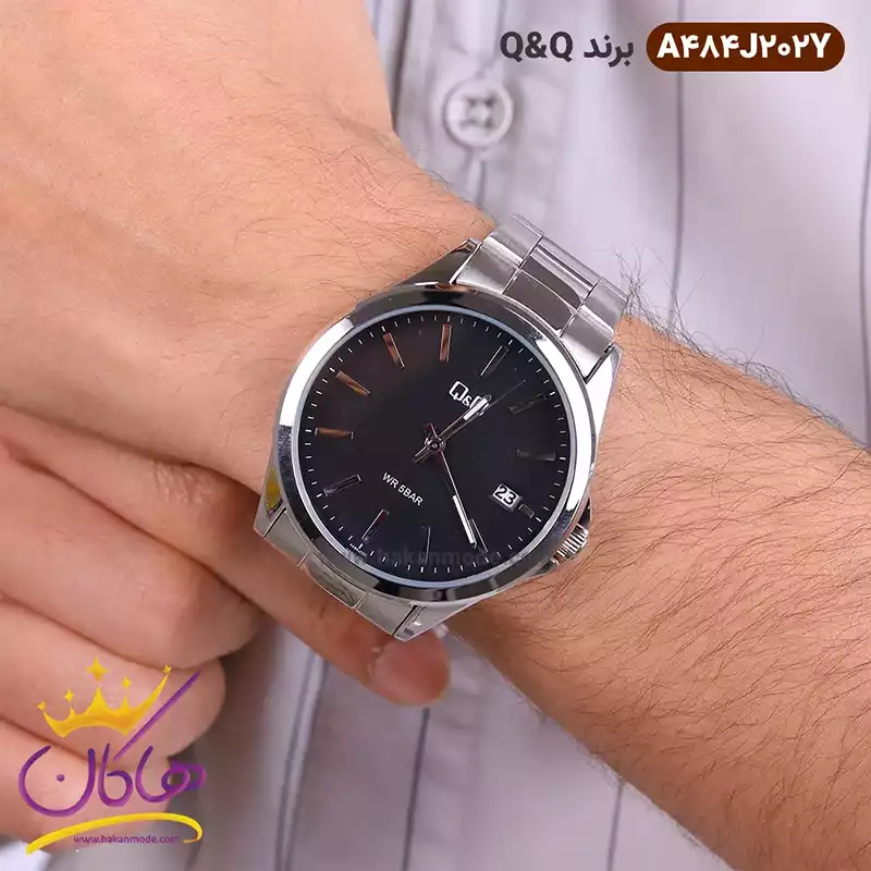 ویژگی ساعت مردانه کیو اند کیو نقره ای صفحه مشکی A484J202Y