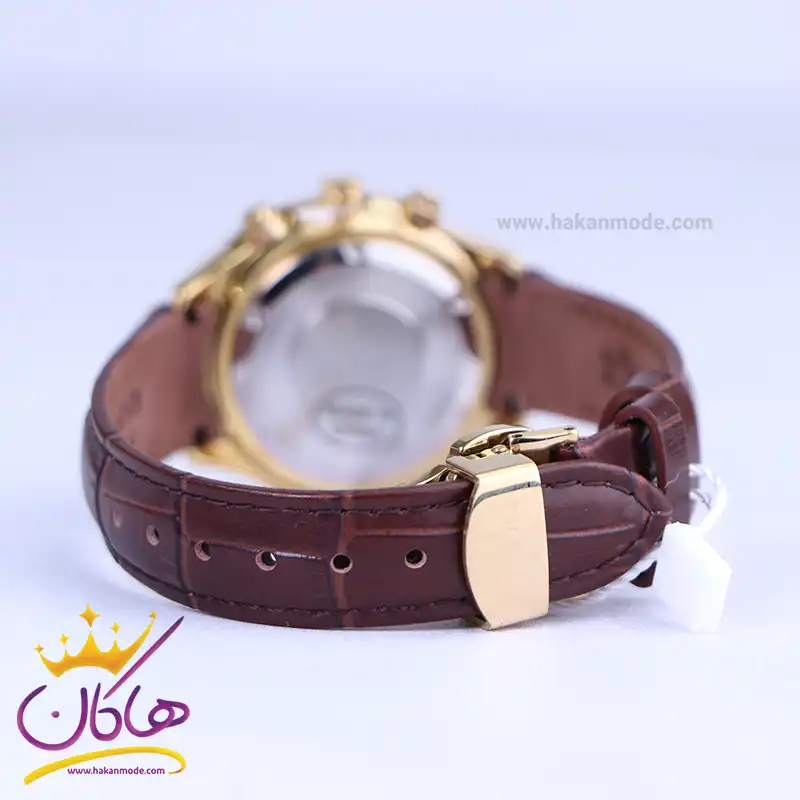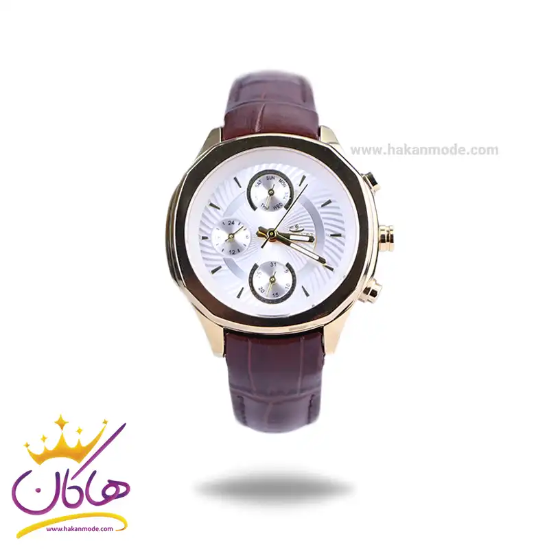 ساعت الگانس زنانه بند چرم قهوهای ظاهری مدرن و جذاب دارد. قاب این ساعت به رنگ استیل طلایی، رنگ ثابت و ضدحساسیت است. علاوه بر ویژگیهای ظاهری اگر به داخل ساعت نگاه کنید، سه صفحهی دایرهای کوچک میبینید که هر کدام نشان دهندهی پارامتری خاص هستند. یک صفحه که بالا قرار دارد روزهای هفته را نشان میدهد. دایرهی پایینی تقویم ساعت است و دایرهی سمت چپی، زمان را به صورت 24 ساعت نشان میدهد. داشتن اندکسهای خطی طلایی و عقربههای شب رنگ به شما این امکان را میدهد که در شب و محیطهای کم نور هم گذر زمان را ببینید. اگر به درون صفحه سفید رنگ و طرحدار ساعت نگاه کنید، نام برند ELEGANCE کنار ساعت 3 قرار دارد. بند ساعت از نوع چرم مرغوب است که پوسته پوسته و بریده نمیشود، همچنین باعث تعرق و خارش نمیشود. قفل این ساعت از مدل پروانهای دکمهدار است و ساعت به راحتی از دست نمیافتد. این مدل قفل، مثل قفل کمربندی روی بند ترک یا بریدگی ایجاد نمیکند و از محبوبترین قفلها است.
