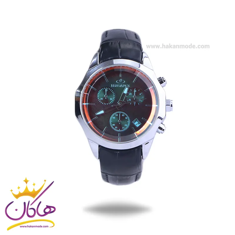 ساعت الگانس زنانه بند چرم مشکی ظاهری مدرن و جذاب دارد. قاب این ساعت به شکل چندضلعی و به رنگ استیل نقرهای، رنگ ثابت و ضدحساسیت است. در واقع این ساعت، طرح سه موتوره است و صفحات کوچک که میبینید، نمایشی هستند. اگر به درون ساعت نگاه کنید، دور تا دور صفحهی ساعت حاشیه قرمز رنگی وجود دارد و همچنین صفحهی ساعت مشکی رنگ است اما تحت تاثیر شیشهی رنگی آن، آبی رنگ دیده میشود. نام برند الگانس زیر ساعت 12 دیده میشود. یک مربع کوچک بین اعداد 4 و 5 قرار دارد که همان تقویم ساعت است. داشتن اندکسهای خطی نقرهای و عقربههای شب رنگ به شما این امکان را میدهد که در شب و محیطهای کم نور هم گذر زمان را ببینید. بند ساعت از نوع چرم مرغوب است که پوسته پوسته و بریده نمیشود، همچنین باعث تعرق و خارش نمیشود. قفل این ساعت از مدل پروانهای دکمهدار است و ساعت به راحتی از دست نمیافتد. این مدل قفل، مثل قفل کمربندی روی بند ترک یا بریدگی ایجاد نمیکند و از محبوبترین قفلها است.