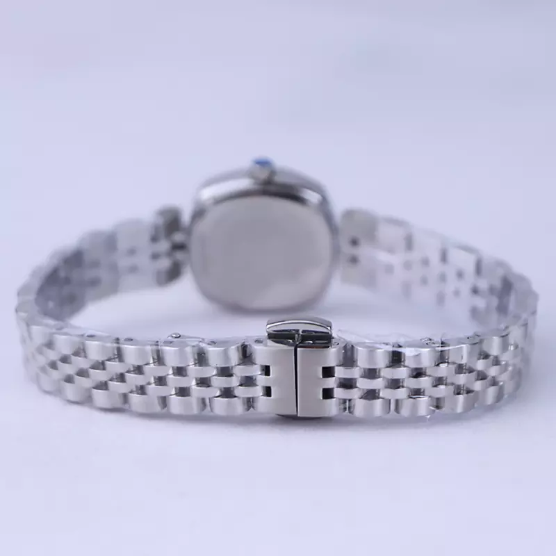 ساعت مچی الگانس زنانه استیل نقرهای ظاهری کلاسیک و جذاب دارد. این ساعت استیل، رنگ ثابت و ضدحساسیت است. اصلیترین چیزی که در ساعت زنانه الگانس توجه ما را به خود جلب میکند، قاب مربع شکل و صفحهی کج ساعت است که ظاهر ساعت را شیک و متفاوت کرده است. صفحهی ساعت صورتی رنگ است و عقربهها، نقرهای و بدون اندکس است. اگر به درون صفحهی ساعت نگاه کنید، نام برند الگانس زیر ساعت 12 دیده میشود. در کنار صفحه یک پیچ کوک برای تنظیم زمان وجود دارد. بند ساعت، فلزی و از نوع استیل مرغوب است که باعث تعرق و خارش نمیشود. بند ساعت نقرهای رنگ طراحی شده و طرح آن رولکسی است و قفل آن از مدل پروانهای دکمهدار بوده که از دسته قفلهای محکم و مطمئن است.