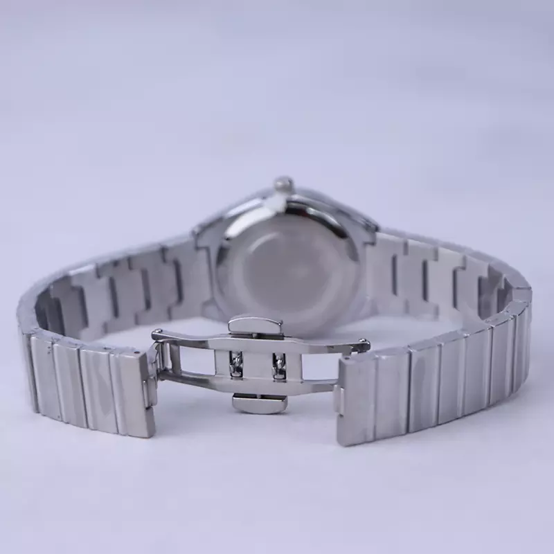 ویژگی ساعت مچی الگانس زنانه فلزی صفحه نقره‌ای آینه‌ای