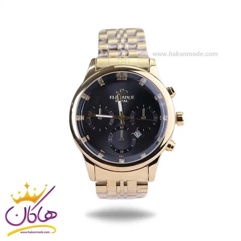 خرید ساعت مچی الگانس مردانه فلزی طلایی صفحه مشکی 9766/1