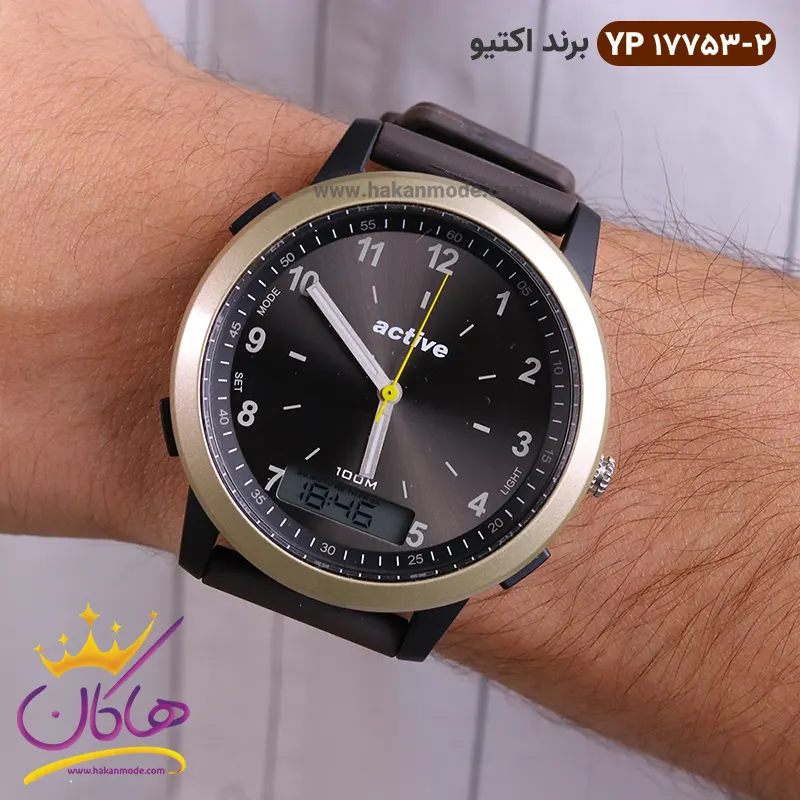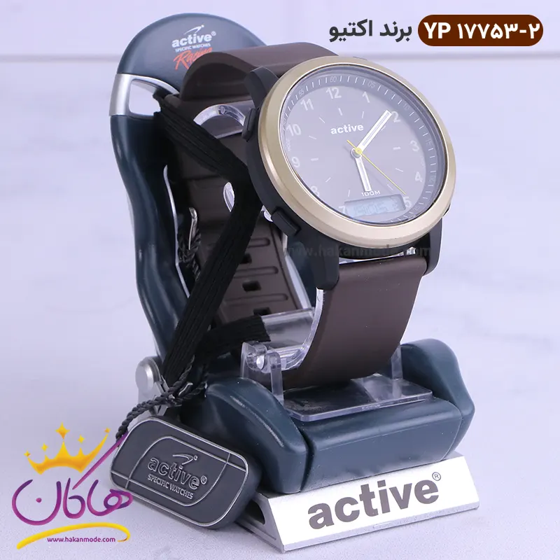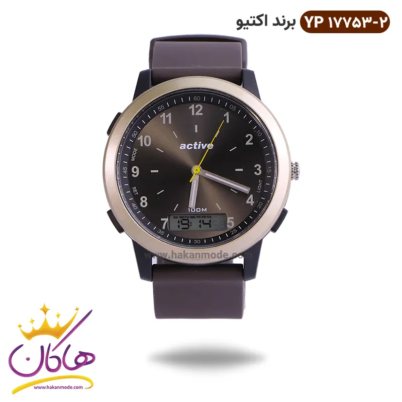 ساعت مچی اکتیو پسرانه دو زمانه قهوه ای 17753/02 yp اصل