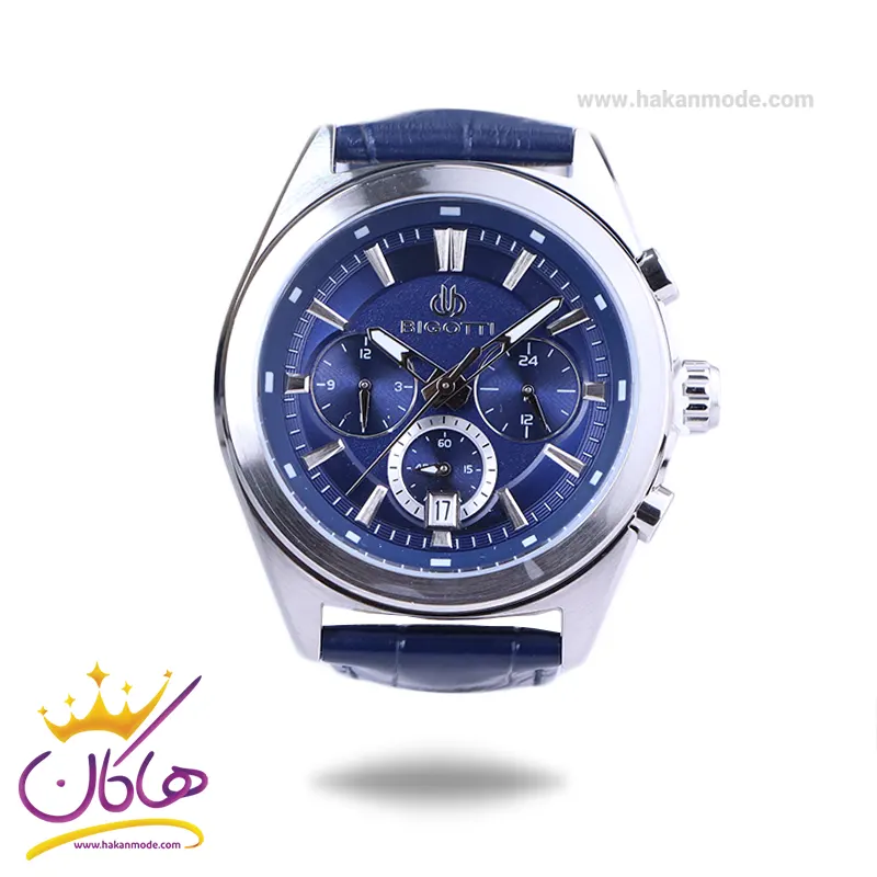 ساعت مچی بیگوتی مردانه بند چرم آبی کرنوگراف BG.1.10630-3