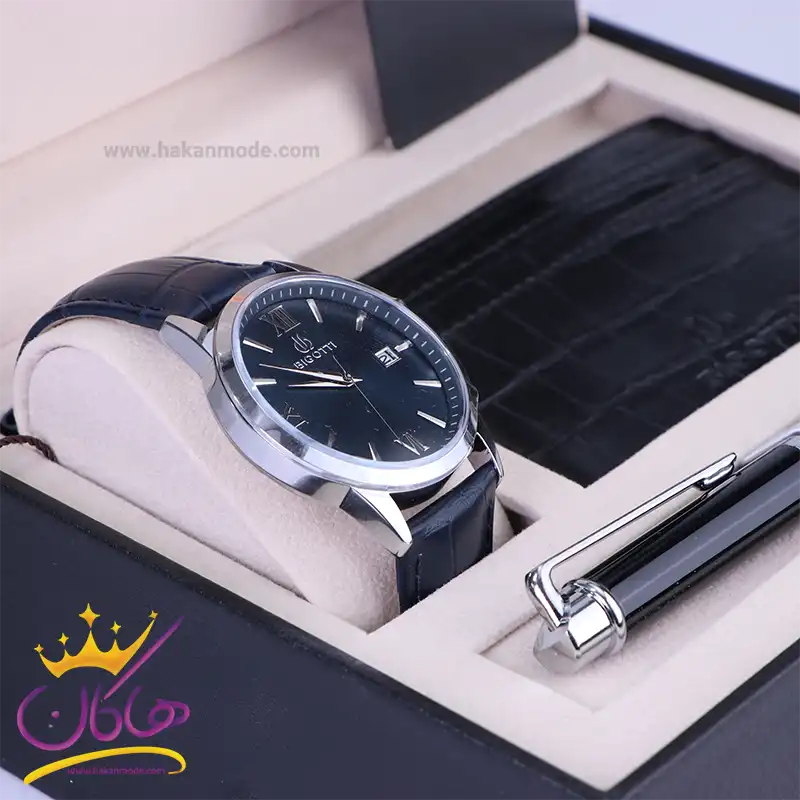 باکس ساعت مچی بیگوتی مردانه با خودکار و کیف جاکارتی