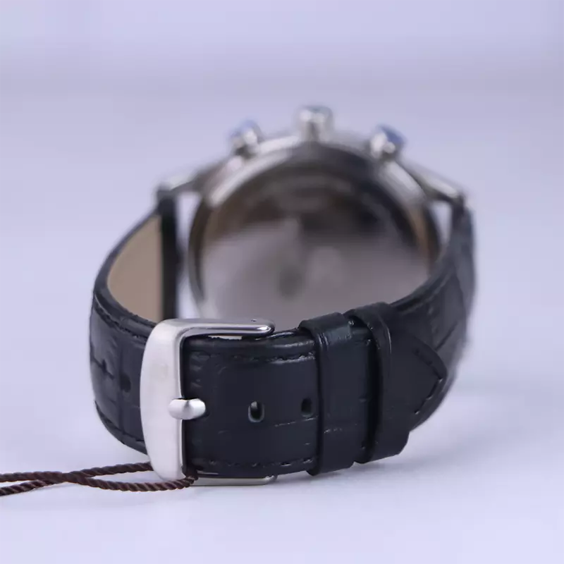 ساعت مچی بیگوتی مردانه بند چرم مشکی BG.1.10510/1 ظاهری مدرن و جذاب دارد. قاب این ساعت به رنگ استیل نقرهای، رنگ ثابت و ضدحساسیت است. اگر به داخل ساعت نگاه کنید، صفحهی این ساعت به رنگ مشکی است و دو صفحه دایرهای کوچک میبینید که هر کدام از آنها نشان دهندهی پارامتری خاص هستند. دایرهی سمت چپ dual time یا دو زمانه است. ساعت دو زمانه ساعتی است که به طور هم زمان میتواند دو زمان مختلف مربوط به دو منطقه متفاوت را نمایش دهد. به صورتی که میتوانید با داشتن این ساعت زمان دو کشور متفاوت را در یک صفحه داشته باشید و دایرهی سمت راست، زمان را به صورت 24 ساعت نشان میدهد. اگر از افرادی هستید که امور خود را بر اساس تایم 24 ساعته تنظیم میکنید این صفحه کوچک به کار شما میآید. بالای عدد ۶ یک مربع کوچک وجود دارد که همان تقویم ساعت است. اندکسهای این ساعت به صورت خطی نقرهای و عقربههای آن نقرهای طراحی شدهاند. لوگوی برند بیگوتی را زیر عدد ۱۲ میبینید. در کنار این ساعت یک پین (دسته کوک) و دو دکمه قرار دارد که پین برای تنظیم تقویم و ساعت است. بند ساعت از نوع چرم مرغوب است که پوسته پوسته و بریده نمیشود، همچنین باعث تعرق و خارش نمیشود. قفل این ساعت از مدل کمربندی است و ساعت به راحتی از دست نمیافتد.
