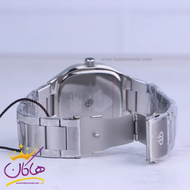 ساعت بیگوتی مردانه فلزی ظاهری مدرن و جذاب دارد. این ساعت استیل نقرهای، رنگ ثابت و ضدحساسیت است. قاب این ساعت به شکل مربع و نقرهای رنگ است. اگر به داخل ساعت نگاه کنید، صفحهی این ساعت به رنگ سرمهای است و دو صفحه دایرهای کوچک سرمهای میبینید که هر کدام از آنها نشان دهندهی پارامتری خاص هستند. یک صفحه که سمت راست قرار دارد ساعت را به صورت 24 ساعته نشان میدهد. اگر از افرادی هستید که امور خود را بر اساس تایم 24 ساعته تنظیم میکنید این صفحه کوچک به کار شما میآید. صفحهی سمت چپ روزهای هفته را نشان میدهد. یک مربع کوچک کنار عدد 6 قرار دارد که تقویم ساعت است. اندکسهای این ساعت به صورت خطی و عقربههای آن شبنما طراحی شدهاند. لوگوی برند Bigotti را زیر ساعت 12 میبینید. در کنار صفحه یک پیچ کوک و دو دکمه برای تنظیم زمان وجود دارد. بند ساعت، از بافت یکدستی تشکیل شده و از نوع فلز مرغوب است که باعث تعرق و خارش نمیشود. قفل این ساعت از نوع دوتکه دکمهدار است.