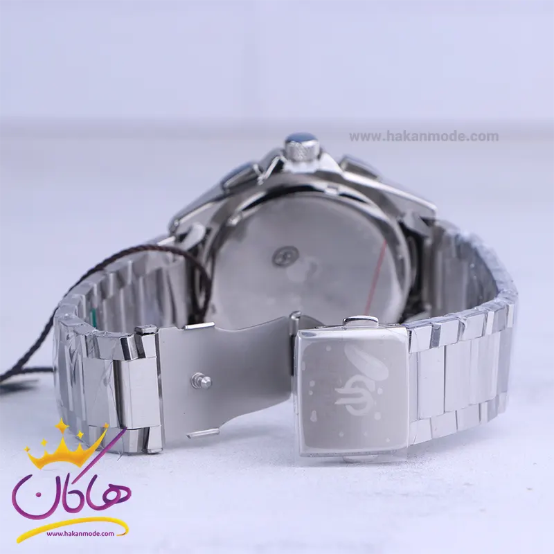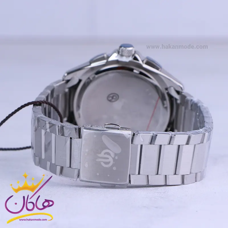 ساعت بیگوتی مردانه فلزی ظاهری مدرن و جذاب دارد. این ساعت استیل نقرهای، رنگ ثابت و ضدحساسیت است. قاب این ساعت به شکل گرد و نقرهای رنگ است. اگر به داخل ساعت نگاه کنید، صفحهی این ساعت به رنگ مشکی است و سه صفحه دایرهای کوچک قاب نقرهای میبینید که هر کدام از آنها نشان دهندهی پارامتری خاص هستند. یک صفحه که سمت راست قرار دارد ساعت را به صورت 24 ساعته نشان میدهد. اگر از افرادی هستید که امور خود را بر اساس تایم 24 ساعته تنظیم میکنید این صفحه کوچک به کار شما میآید. صفحهی پایین ثانیه شمار کرنوگراف و صفحهی سمت چپ دقیقه شمار کرنوگراف است. یک مربع کوچک کنار عدد 6 قرار دارد که تقویم ساعت است. اندکسهای این ساعت به صورت خطی و عقربههای آن شبنما طراحی شدهاند. لوگوی برند Bigotti را زیر ساعت 12 میبینید. در کنار صفحه یک پیچ کوک و دو دکمه برای تنظیم زمان وجود دارد. بند ساعت، از بافت یکدستی تشکیل شده و از نوع فلز مرغوب است که باعث تعرق و خارش نمیشود. قفل این ساعت از نوع دوتکه دکمهدار است.
