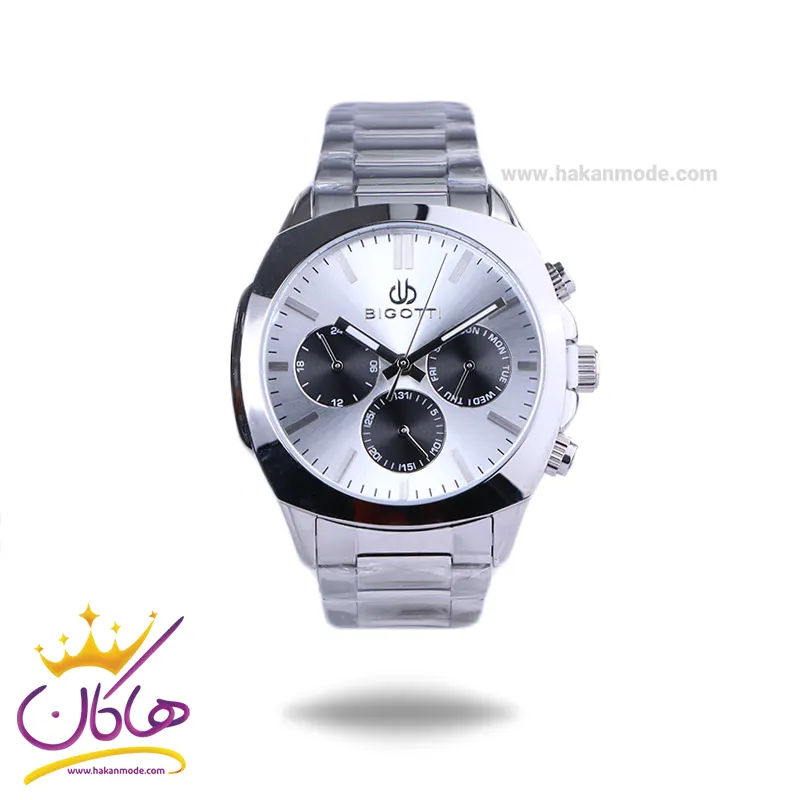 بهترین قیمت ساعت بیگوتی مردانه استیل نقرهای