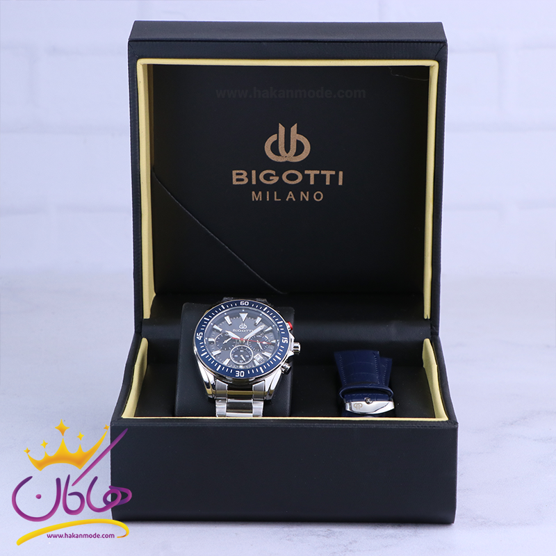 بهترین قیمت ساعت مردانه بیگوتی اصل مدل اسپرت کرنوگراف با دو بند فلزی و چرمی