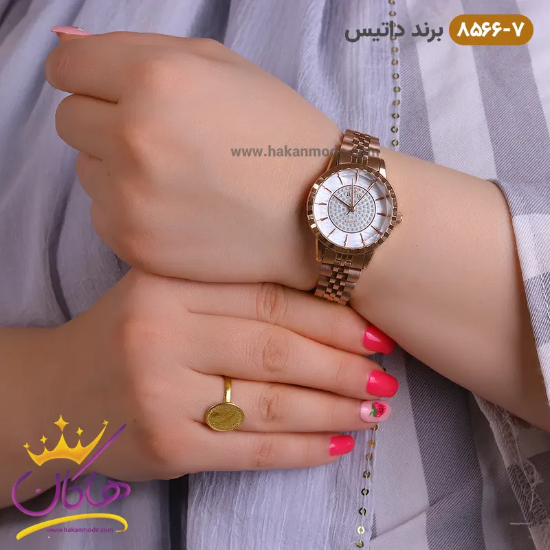 بهترین قیمت ساعت مچی داتیس رزگلد زنانه صفحه سفید 8566/7