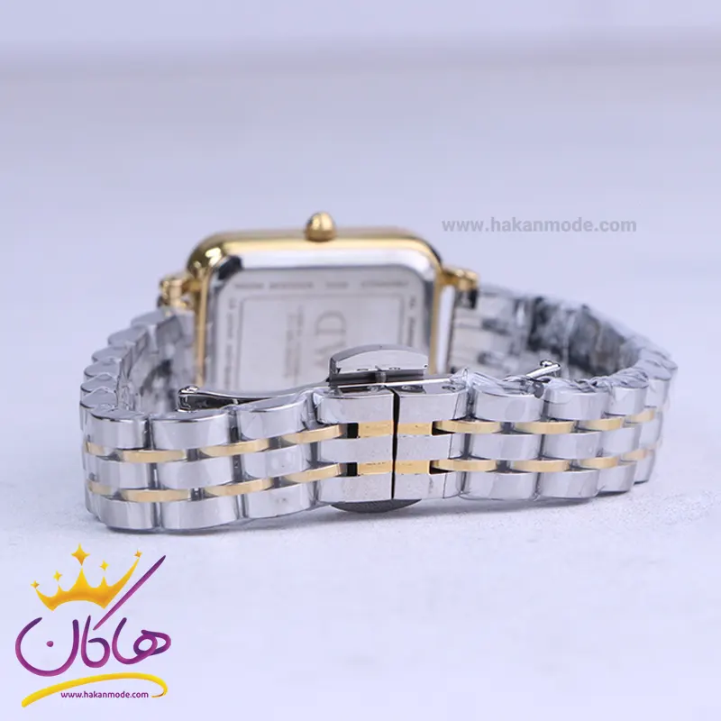 در خرید ساعت دنیل ولینگتون زنانه فلزی، توجه داشته باشید که از نظر قیمت در حد متوسط و از نظر کیفیت از بهترین نمونههای ساعت “های کپی” است. موتور این ساعت ساخت ژاپن و از نوع کوارتز است. این مدل ساعت دنیل ولینگتون، تک موتوره است و چون موتور تمام انرژی خود را فقط صرف چرخاندن عقربهها میکند، هم موتور و هم باتری، طول عمر بیشتری دارند. ساعت دنیل ولینگتون زنانه فلزی نقرهای طلایی صفحه مستطیل دارای استاندارد 3 ATM است یعنی تا حد شستشوی دستها ضدآب است. داشتن یکسال گارانتی موتور و پنج سال ضمانت تعویض باتری از دیگر دلایل محبوبیت این ساعت است. این ساعت مچی زنانه شیک بیشتر برای استایل کژوال و استفاده روزانه مناسب است، پس با خیال راحت آن را به دست بیندازید و به مهمانی، خرید یا دانشگاه بروید.