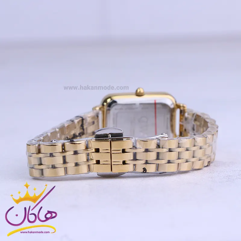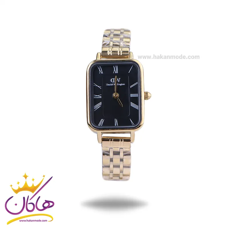 ساعت دنیل ولینگتون زنانه فلزی طلایی ظاهری کلاسیک و جذاب دارد. این ساعت استیل طلایی، رنگ ثابت و ضدحساسیت است. اصلی‌ترین چیزی که در ساعت زنانه دنیل ولینگتون توجه ما را به خود جلب می‌کند، قاب مستطیل شکل و طلایی رنگ ساعت است که بر شیکی آن افزوده است. اگر به درون ساعت دقت کنید، صفحه‌ی ساعت مشکی رنگ است که عقربه‌ها نیز، طلایی و اندکس‌ها لاتین و سفید طراحی شده‌اند. نام برند دنیل ولینگتون زیر ساعت 12 دیده می‌شود. در کنار صفحه یک پیچ کوک برای تنظیم زمان وجود دارد. بند ساعت، فلزی و از نوع استیل مرغوب است که باعث تعرق و خارش نمی‌شود. طرح این بند از یک بافت ریز و درشت تشکیل شده که طلایی است و قفل این ساعت عقربه‌ای زنانه از مدل پروانه ای دکمه‌دار است که از دسته قفل‌های محکم و مطمئن است.