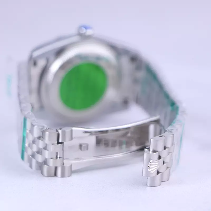 علاوه بر ویژگیهای ظاهری اگر به داخل ساعت نگاه کنید، یک صفحه مشکی مشاهده میکنید که اندکسهایی که زمان ساعت را نشان میدهند به شکل خطی خودنمایی میکنند. دور تا دور صفحه ساعت به صورت کنگرهای و نقرهای است. لوگوی برند رولکس که شبیه یک تاج است روی عدد 12 به خوبی مشخص است. داشتن عقربههای شبنما به شما این امکان را میدهد که در شب و محیطهای کم نور هم گذر زمان را ببینید. تقویم روی عدد 3 قرار گرفته است و با شیشه ذرهبینی که دارد کاملا خوانا و واضح است. بند ساعت از یک بافت ریز و درشت تشکیل شده که نقرهای رنگ میباشد. قفل این ساعت بند استیل از نوع دوتکه چفتی است و ساعت به راحتی از دست نمیافتد.