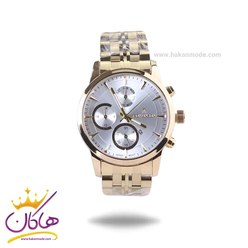 قفل ساعت مچی مردانه رومانسون فلزی طلایی صفحه سفید 030/5