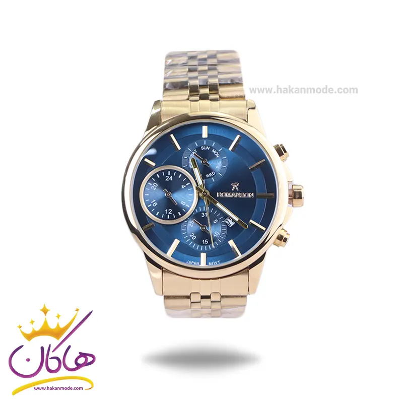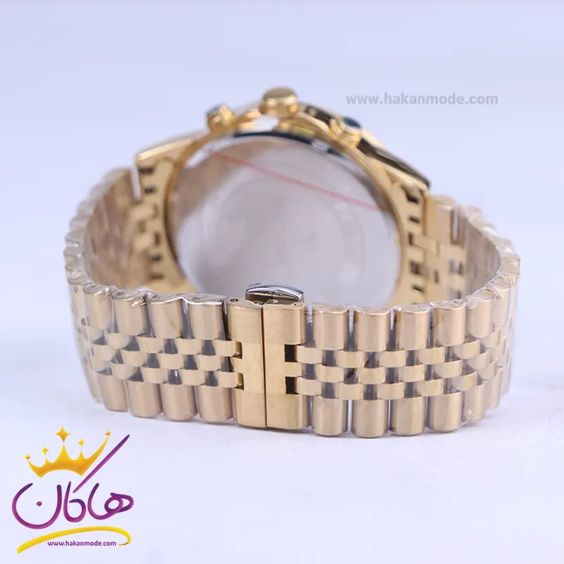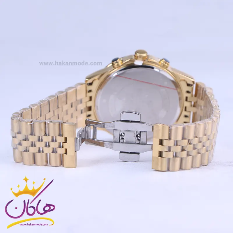 قفل ساعت مچی مردانه رومانسون فلزی طلایی صفحه آبی 9766/3