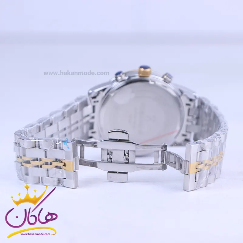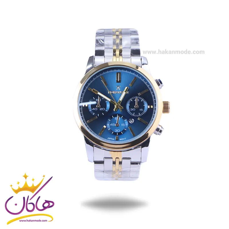 قفل ساعت مچی مردانه رومانسون فلزی نقره ای طلایی صفحه آبی