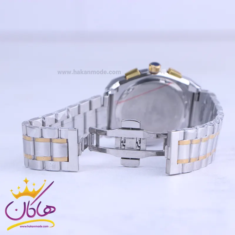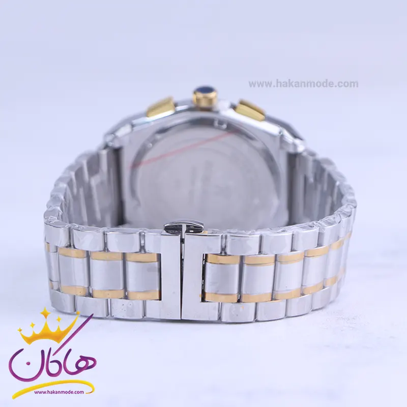 قفل ساعت مچی مردانه رومانسون فلزی نقره ای طلایی صفحه مشکی 972/5
