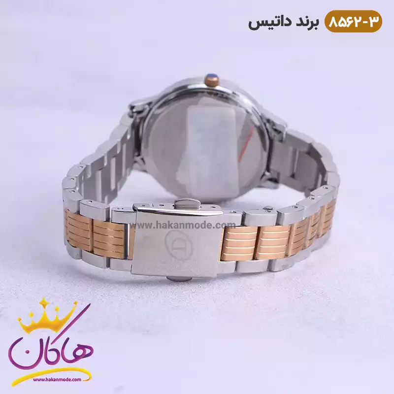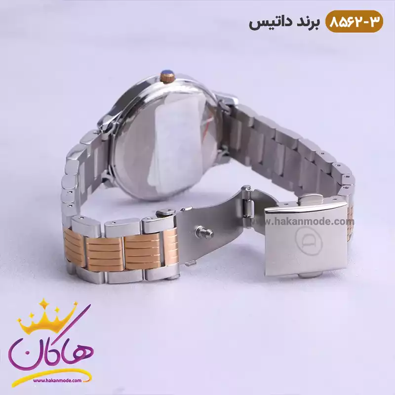 ساعت مچی زنانه داتیس بند نقره ای رزگلد 8562/3 نمای بسته قفل