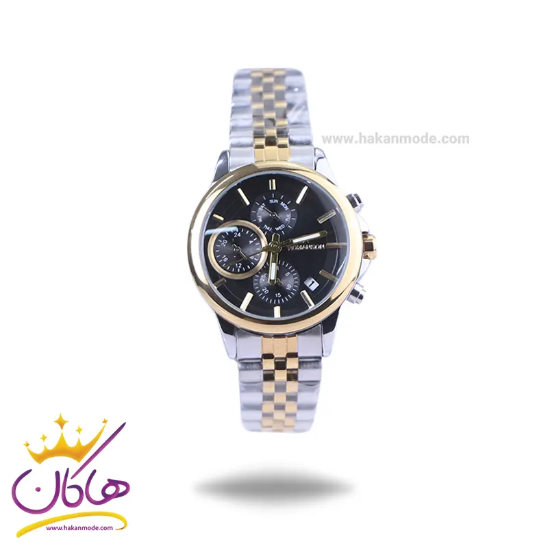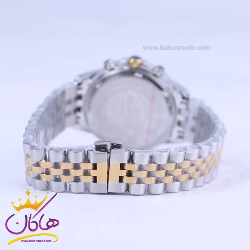 قفل ساعت مچی زنانه فلزی رومانسون نقره ای طلایی صفحه مشکی 9766/6
