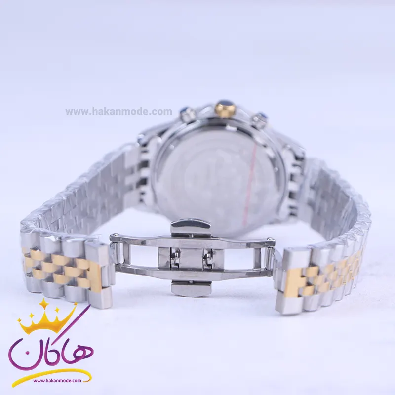 ساعت مچی رومانسون زنانه فلزی ظاهری مدرن و جذاب دارد. این ساعت استیل نقرهای طلایی، رنگ ثابت و ضدحساسیت است. در واقع این ساعت، طرح سه موتوره است و صفحات کوچکی که میبینید، نمایشی هستند. عقربهها، شبنما و اندکسها خطی و طلایی هستند. اگر به درون صفحه مشکی رنگ ساعت نگاه کنید، نام برند رومانسون کنار ساعت 3 دیده میشود. یک مربع کوچک بین اعداد 4 و 5 قرار دارد که همان تقویم ساعت است. در کنار صفحه یک پیچ کوک برای تنظیم زمان وجود دارد. بند ساعت، فلزی و از نوع استیل مرغوب است که باعث تعرق و خارش نمیشود. طرح این بند از بافت ریز و درشت تشکیل شده که قسمت میانی آن طلایی و کنارههای آن نقرهای رنگ است. قفل ساعت از مدل پروانه ای دکمهدار است که از دسته قفلهای محکم و مطمئن است.