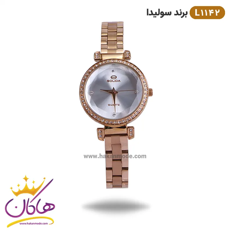 ساعت مچی زنانه سولیدا طلایی صفحه نگین کد Solida 1114/1