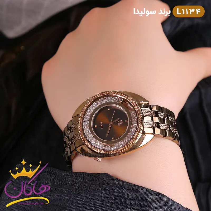 بهترین قیمت ساعت مچی زنانه سولیدا رز گلد صفحه قهوه ای کد L 1134