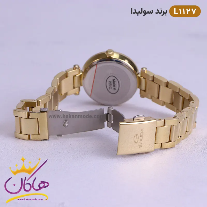 ساعت مچی زنانه سولیدا طلایی صفحه سفید کد Solida 1127