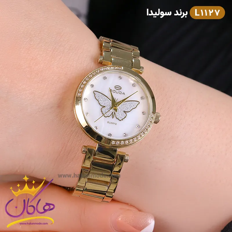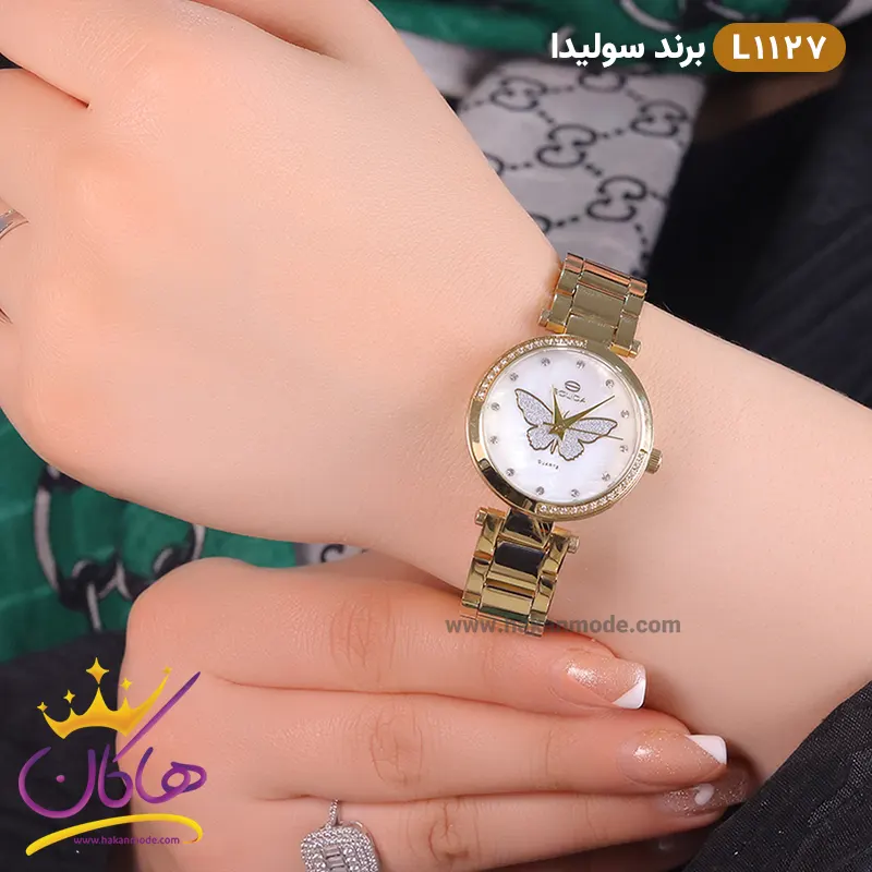 ساعت مچی زنانه سولیدا طلایی صفحه سفید کد 1127